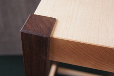 脚部にはブラックウォルナットを、座面と貫にはハードメープルを使うことで上品に仕上げました。